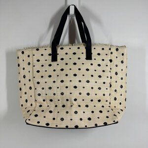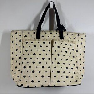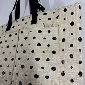 Quintana Stylish Polka Dot Tote Bag Cream Black Raffia Straw Shopper Beach Bag