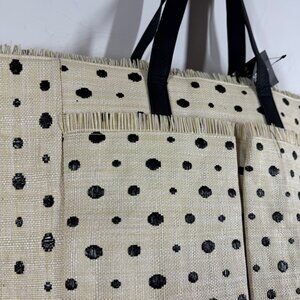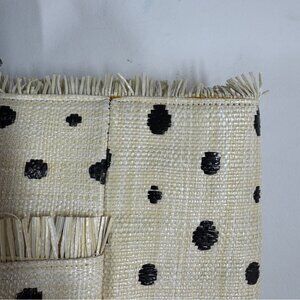 Boho Stylish Polka Dot Tote Bag Cream Black Raffia Straw Summer Beach Bag