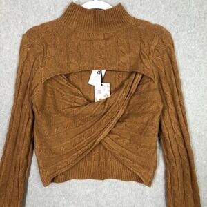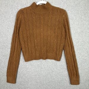 Hippie Rose Sweater XS Rust Cable Twist Open Back Academia Tennis Prep Heritage Preppy Mock Neck Turtleneck Stretch Corp Career Work Office Business Church Old Money College University School Teacher