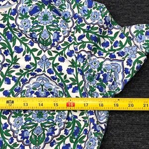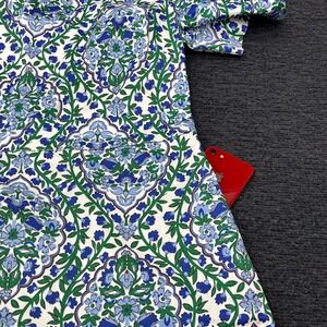 Boden Blue Green Floral Damask Short Sleeve Mini Shift Dress Pockets US 10L
