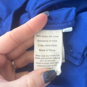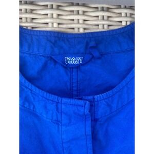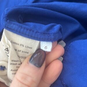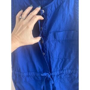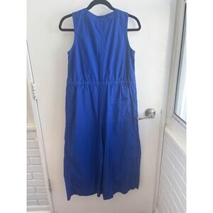 Toast Cotton Linen blend Sleeveless Utility Wide Leg Cropped Jumpsuit in royal blue. Button front with tie belt. Size 6. Excellent used condition