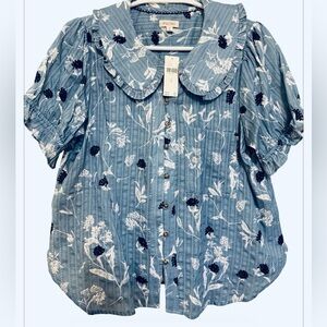 Anthropologie Pilcro Keira Blouse NWT Blue Floral Peter Pan Collar Top Size M