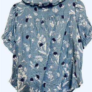 Gorgeous Anthropologie Pilcro Keira Collared Button-Front Blouse in a soft dusty blue with delicate floral print.