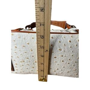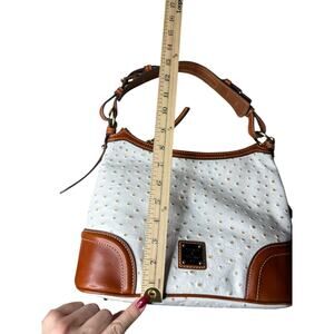 Dooney & Bourke Ostrich Collection Hobo Bag White Ivory Leather Brown Trim