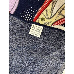 This product is a vintage Geisha-themed scarf from Japan, featuring traditional Japanese textile art. The scarf is made of rayon material and has a colorful design with a motif of geishas looking into a mirror. Perfect for everyday wear, this original piece of vintage accessories exudes a Japanese style and is ideal for women who appreciate unique and culturally-inspired fashion accessories.