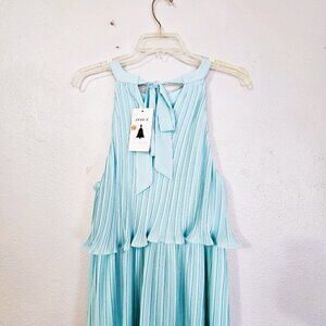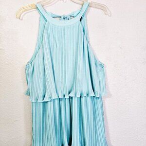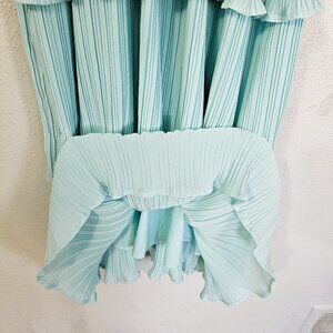 This Feminine Flouncy and Flirty Aqua Blue Tiered Layed Accordion Pleated Sleeveless Halter Neck Dress Size L will elevate your wardrobe to a desired chicness and elegance. Its other features are elastic high waist, ruffle hem, tie back design opening, Midi length, soft, lightweight, breathable fabric which offers all day comfortable. This dress is suitable for almost any occasion, wedding guest, cruise dinner, party/cocktail, graduation, vacation, New With Tag. Excellent Condition.