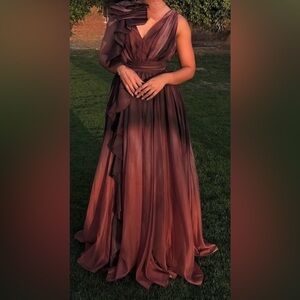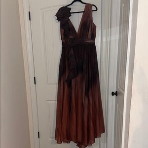 Muse by Marchesa Lily Organza Ombré Cascading Ruffles V-Neck Gown