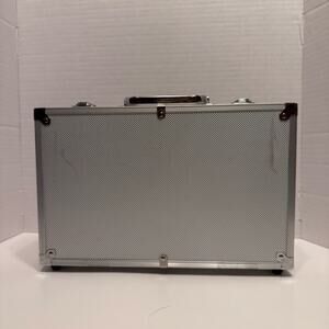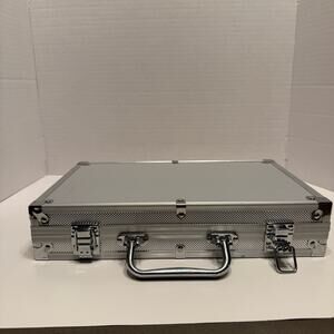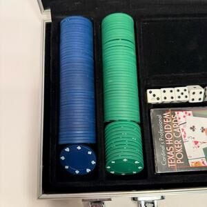 Great condition clasp closure sliver case poker Texas hold em card set.