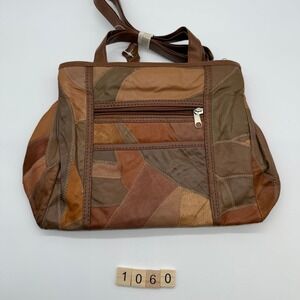 This is a new without tags Genuine Leather Patchwork Shoulder Bag crafted in a beautiful array of brown tones and textures. This boho-chic shoulder bag features a unique patchwork design made from various genuine leather pieces. It comes with both handles and an adjustable shoulder strap for versatile carrying options. A zippered closure keeps your belongings secure.