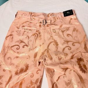 ETRO Milano FW18 Metallic Rose Gold Signature Paisley Carpenter Jeans 30 Italy