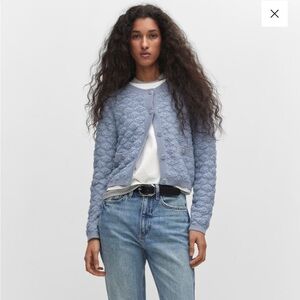 NWT Mango Textured Lady Cardigan Sweater Light Blue Size L