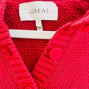 The GREAT. raspberry red Bobble cardigan crewneck sweater M Rare