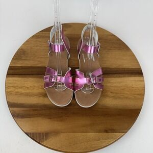 Big Kids Girls Nina Lacey Metallic Pink Strappy Platform Sandals Size 5 Y GUC