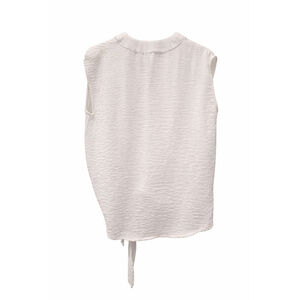 The Impeccable Pig White Wrap Tie Top • Sleeveless Textured Blouse • Size L