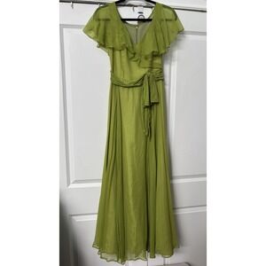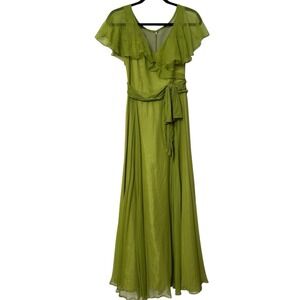 Vintage Green Ruffled Flowy Long Maxi Dress Flutter Fleece Sheer Chiffon Prom Bridesmaid Wedding Guest Fairy