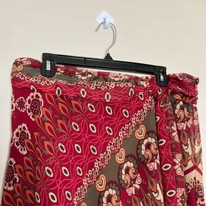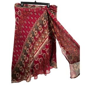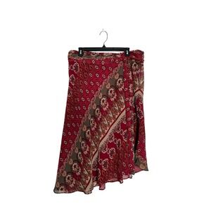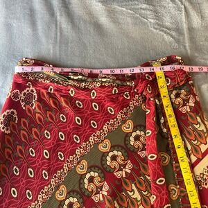 Versailles Red Paisley Faux Wrap Midi Skirt Womens 14 Asymmetrical Boho 516011