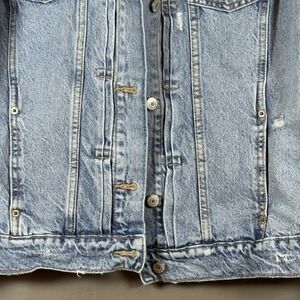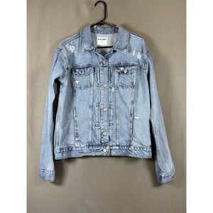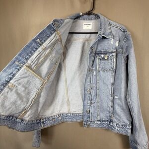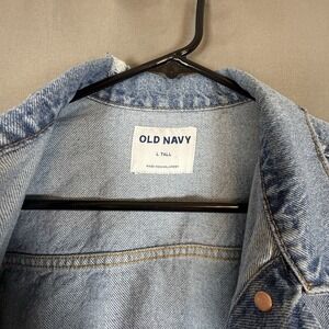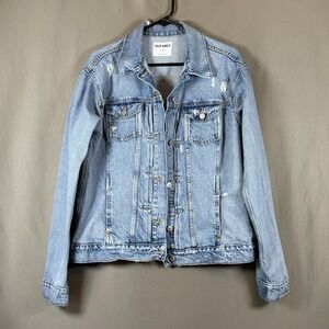 Old Navy Jean Jacket Women's Trucker Style Retro Blue Denim Distressed L Tall