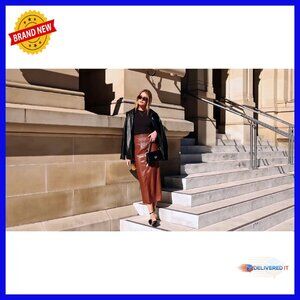 Brand new and in flawless condition — this elegant faux leather maxi skirt offers a sleek, elevated look perfect for work, evening events, or chic weekend wear. The silhouette is flattering, comfortable, and designed for versatile styling.