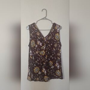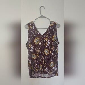 Lane Bryant Burgundy Floral Sleeveless Fall Blouse 14/16