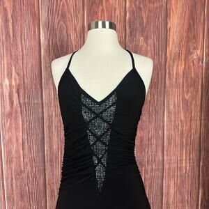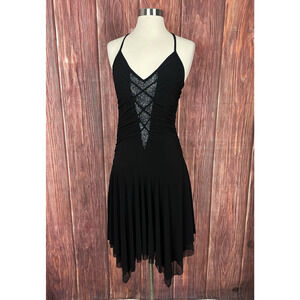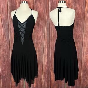 Vintage Y2K VIZIO Black Fairy Grunge Dress Halter Neck Whimsigoth Made in USA L