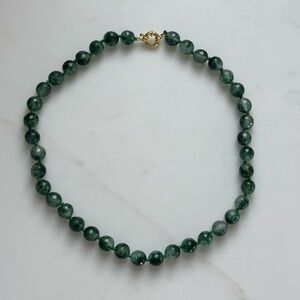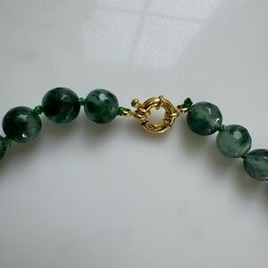 NWOT! Beautiful multifaceted green jade beads with gold plated clasp. The green jade stones are natural and feature variations in color as pictured. Approx 18” long.