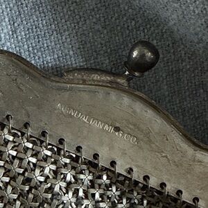 Mandalian purses are highly collectible early 20th-century pieces known for their detailed enamel work and craftsmanship. This piece features a heavier mesh construction, ornate Art Deco–style frame, and delicate fringe accents.