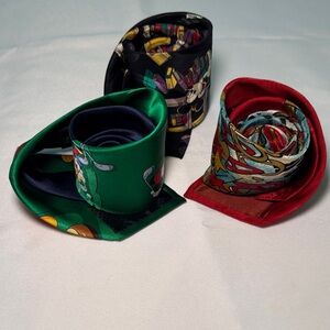 Add a playful touch to your wardrobe with this Disney Mickey Mouse tie set. Featuring vibrant designs in green, black, and red, these ties are perfect for any Disney fan.