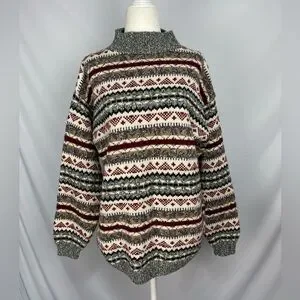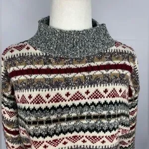 Carly Blake multi colored mock turtleneck pull over cotton blend sweater.