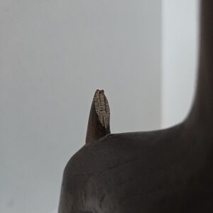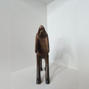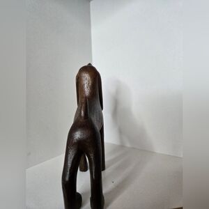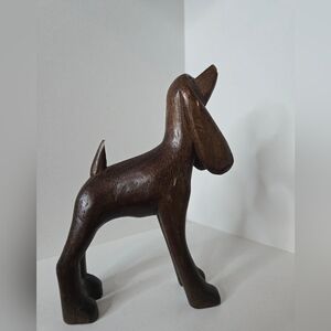 Elegant hand-carved brown wooden dog figurine. Smooth finish and charming minimalist design. Perfect decorative accent for pet lovers. Brown color complements natural and rustic décor.