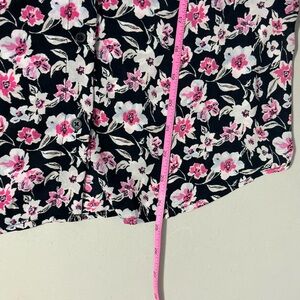 Chic blouse with vibrant pink and white floral design. Ideal for any casual occasion.