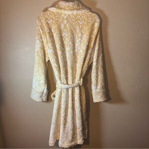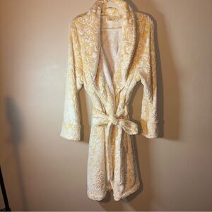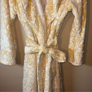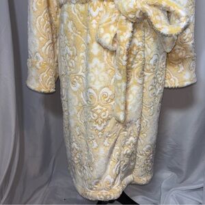 Women’s Yellow and White Patterned Plush Comfy Belted Robe