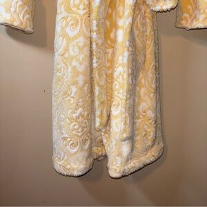 Women’s Yellow and White Patterned Plush Comfy Robe