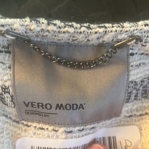 Keywords: Vero Moda, Fringe Jacket, Striped Blazer, Textured Jacket, Open Front Blazer, Blue and White Jacket, Casual Blazer, Office Wear, Boho Chic, Contemporary Jacket, Woven Jacket, Coastal Style, Lightweight Blazer