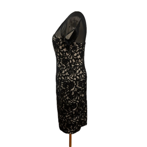 BLACK LACE DRESS MAGGY LONDON LINED BODYCON KNEE LENGTH COCKTAIL EUC 8