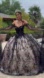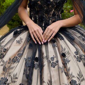 New Black-Champagne Quinceanera Gown w/ Floral Applique Lace Up Corset GL3500