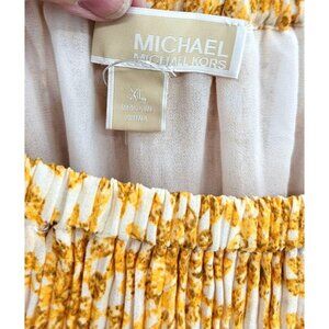 Michael Michael Kors Yellow Floral Pleated Midi Dress XL Boho Belted Summer