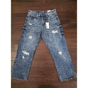 Rue21 Jeans Mens 30 X 26 Blue Denim Relaxed Crop Distressed Acid Wash Cotton New