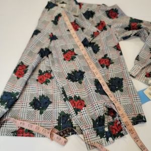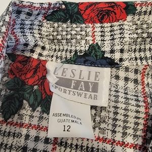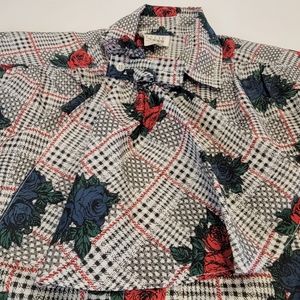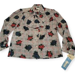 Vintage Leslie Fay Sportswear Floral Gingham Puff Sleeve Tie Button Up Top NWT!