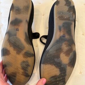 Rothy's Square-Toe Mary Jane Flats in Black with Blue Trim