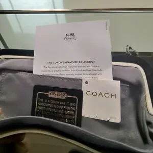 This authentic Coach purse is made of signature C canvas with custom twill lining and silver tone hardware.