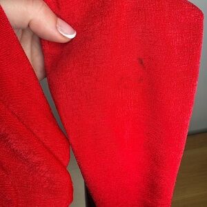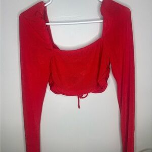 Princess Polly red crop top with long sleeves. Features a stylish front tie detail. Perfect for a bold look. Mark on sleeve shown in photo