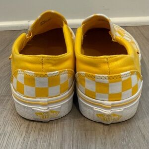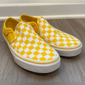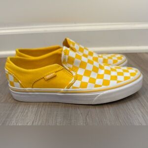 Vans yellow and white checkerboard slip-on sneakers in women’s size 7.
