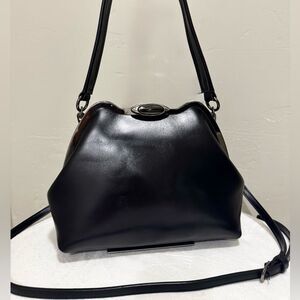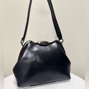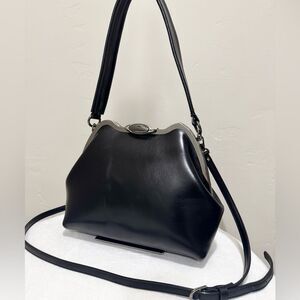 Only one available. Large size. Vintage style. Handmade from premium oil wax cowhide with uniquely custom metal frame. Spacious enough for your phone, wallet, cosmetics, book, compact umbrella, and other items. Includes 2 leather strap styles, use in multiple ways. Accessorize as a day or evening bag, or a gift for an important someone.