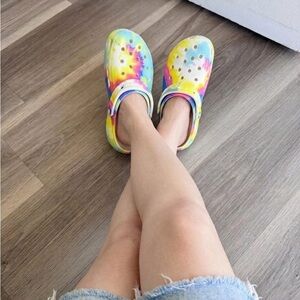 CROCS Tie-Dye Clogs - Yellow Blue Pink