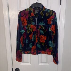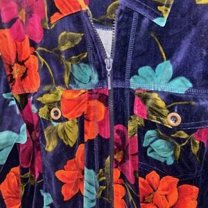 Carole Little Sport Petites Bold Floral Velour Jacket Size Small 90's Vintage