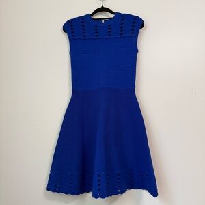 Ted Baker Zaralie Jacquard Royal Blue Fit Flare Skater Sweater Dress