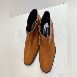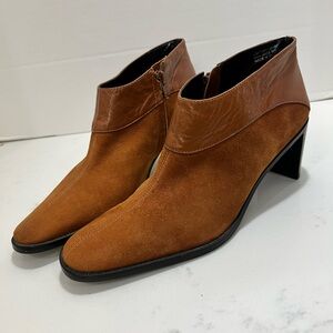 Etienne Aigner Cognac Suede & Leather Ankle Booties