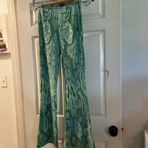 Zara Green Paisley Wide-Leg Pants