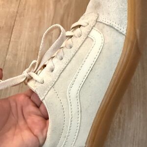 Classic Vans sneakers in beige suede. Comfortable and stylish for daily wear. Only used once