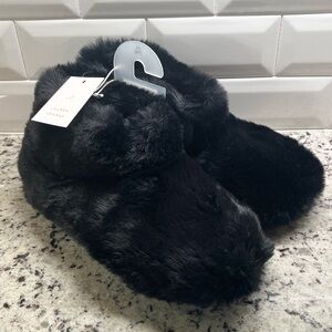 Lauren Conrad Faux Black Fur Bootie Slippers Size M NWT